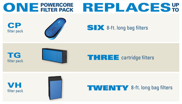 Torit® PowerCore® 过滤元件可以替换大部分型号的滤筒及滤袋,它已经应用数十年,得到了客户广泛认可,它的优点如下: