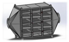 B、采用新型的活性炭吸附材料——蜂窝状活性炭,其与粒(棒)状相比具有优势的热力学性能,低阻低耗,高吸附率等,极适合于大风量下使用。