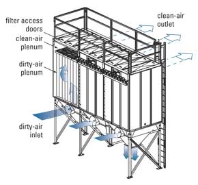 • 高位进风型号在较轻的粉尘过滤时仍可保持较高的过滤风速