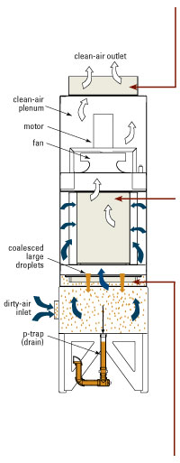 | 水溶性油雾颗粒尺寸: 2-20 微米 | 烟雾颗粒尺寸:0.07-1.2 微米 | 切削油颗粒尺寸: 0.8-5 微米 |